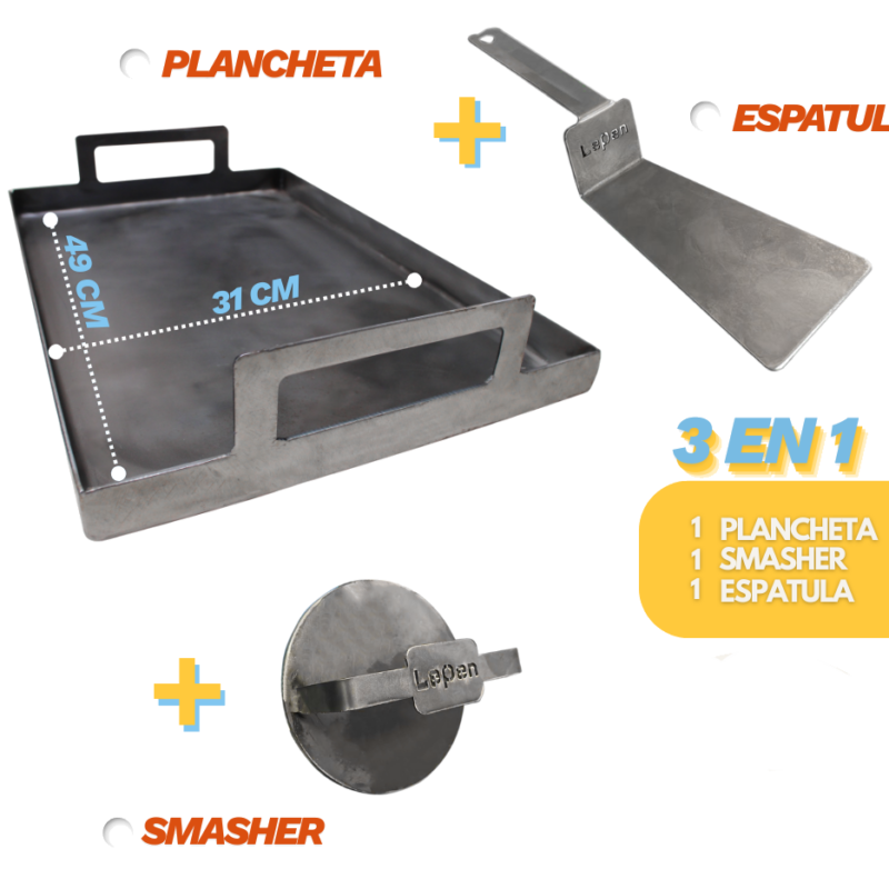 • COMBO 3 X 1 Smasher + plancha Bifera + Espátula